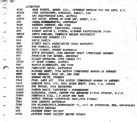 printout of artex 'whois'list, 19 november 1982