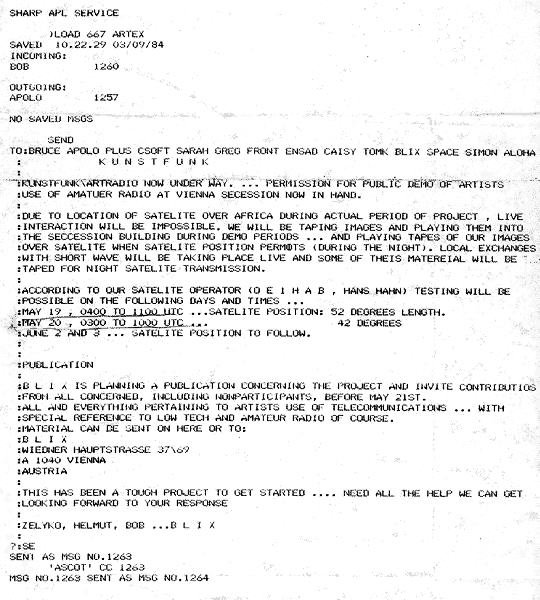 receive artworks via radio - with proposed test dates