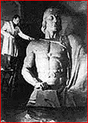 | Bernhard Graf Plettenberg  Plettenberg in seinem Atelier (bei der Arbeit an "Siegfried", einer der Figuren für die Nibelungenbrücke in Linz) |