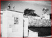 | DER "EWIGKEITSGEDANKE"  Auf dem Reichsparteitag 1937 formuliert Adolf Hitler die Aufgaben der Architektur folgendermassen: "Weil wir an die Ewigkeit dieses Reiches glauben, sollen auch diese Werke ewige sein, das heisst, [...] nicht gedacht sein für das Jahr 1940, auch nicht für das Jahr 2000, sondern sie sollen hineinragen gleich den Domen unserer Vergangenheit in die Jahrtausende der Zukunft. Und wenn Gott die Dichter und Sänger heute vielleicht Kämpfer sein lässt, dann hat er aber den Kämpfern jedenfalls die Baumeister gegeben, die dafür sorgen werden, dass der Erfolg dieses Kampfes seine unvergängliche Erhärtung findet in den Dokumenten einer einmaligen grossen Kunst. Dieser Staat soll nicht eine Macht sein ohne Kultur und keine Kraft ohne Schönheit." |