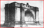 | Hitlers Hang zur Monumentalbauweise  Hitler-Skizze für den Berliner Triumphbogen "Wie oft pilgerte ich in meiner Jugendzeit hierher [Anm: zum Landesmuseum], um diese Pracht zu bewundern [...] und da wollen mir manche Leute einreden, das sei eine dekadente Epoche gewesen! Sogar Verfallskunst. Nein! Solch eine Wirkung schwebte mir vor, als ich nach den Landsberger Gefängnisjahren die Friese an meinem Triumphbogen gezeichnet habe. Brekers Entwürfe sind ausgezeichnet, aber trotzdem nicht besser als diese hier!" Hitler über sein "Spitzenwerk deutscher Baukunst", das Landesmuseum in Linz |