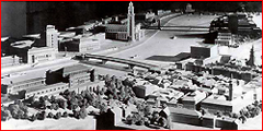 Hermann Gieslers Linz-Modell![]() Am 18. Februar 1945 überbringt Giesler seinem " anderen Hitler" im Bunker unter der Reichskanzlei das Modell von Linz, das Gieslers Modellbauer mit Lampen bestückt haben, sodass der Führer "sein" Linz in der Morgen- und Abenddämmerung betrachten kann. Vom Trauma des Krieges flüchtet Hitler in die Traumwelt der Architektur. "Als ich dann Adolf Hitler in diesen Raum führte, stand er lange, wie überwältigt durch den Gesamteindruck, nur schauend [...] versunken [...], und ich kam beim Blick auf das Modell nicht von dem Gedanken los: Architektur, die nicht gebaut wurde. [...] Es war fast immer dasselbe: Ein langes, versunkenes, traumhaftes Schauen zu Beginn, dem dann eine Unterhaltung über Einzelheiten der im Modell dargestellten Bauten und Brücken folgte [...] Er zeigte ihnen das Modell, als sei es ein verheissenes Land, in das wir Eingang finden würden." Aus: Hermann Giesler: "Ein anderer Hitler. Bericht seines Architekten", Druffel Verlag 1978. |